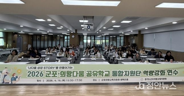 정안뉴스 안정주 기자 | 군포의왕교육지원청은 2026년 군포의왕다움 공유학교 운영의 내실화를 위해 4월 16일 ‘통합 지원단 역량강화 워크숍’을 운영하며, 지역 기반 교육 혁신을 선도할 전문 지원체계 구축에 나선다.