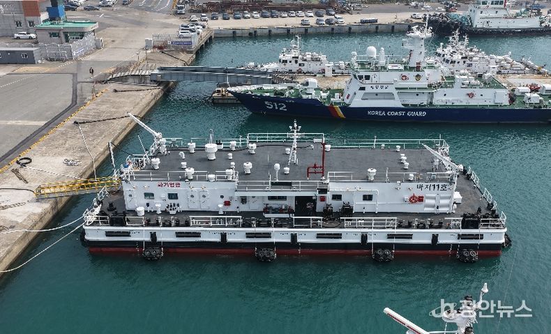 정안뉴스 김재홍 기자 | 사천해양경찰서는 삼천포 신항 해경 전용부두에 경비함정의 연료보급 지원 역할을 담당할 600톤급 유류바지를 신규 배치하고 4월17일부터 업무를 시작했다고 밝혔다.