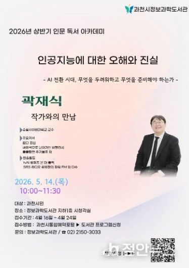 정안뉴스 안정주 기자 | 과천시정보과학도서관은 시민을 대상으로 ‘2026년 상반기 인문 독서 아카데미’를 운영한다고 밝혔다.