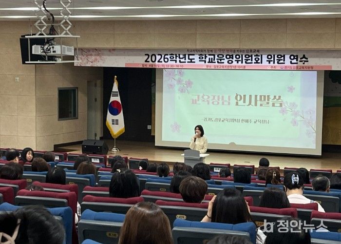 정안뉴스 안정주 기자 | 경기도김포교육지원청은 4월 16일 아라홀에서 초·중·고 및 특수학교 학교운영위원회 학부모위원과 지역위원을 대상으로 ‘2026 학교운영위원회 위원 연수’를 실시했다.