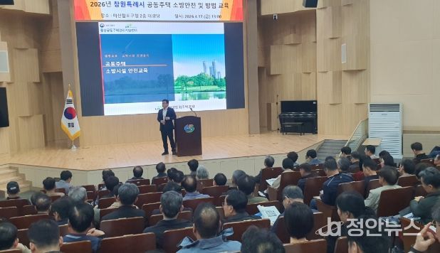 정안뉴스 김재홍 기자 | 창원특례시는 공동주택의 안전한 주거환경 조성과 체계적인 시설 관리를 위해 지난 17일, 마산합포구청 대회의실에서 공동주택 관리주체를 대상으로 ‘2026년 상반기 공동주택관리 소방안전 및 방범교육’을 실시했다고 밝혔다.