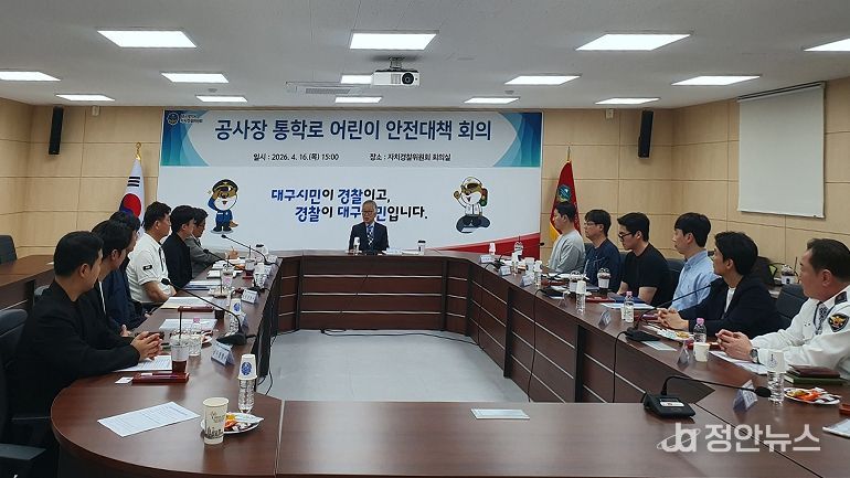 정안뉴스 안정주 기자 | 대구광역시 자치경찰위원회는 최근 수성구에서 발생한 천공기 전도 사고를 계기로, 초등학교 통학로 인근 공사현장과 보행 위험요인에 대한 특별 점검에 나서 어린이 통학로 안전 확보에 총력을 기울인다.