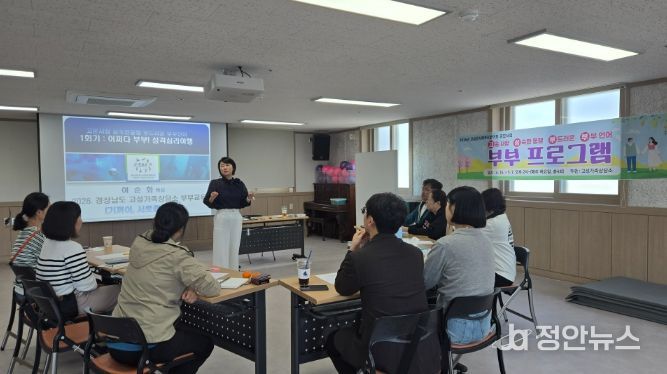 정안뉴스 김재홍 기자 | 고성가족상담소는 부부 간 건강한 의사소통과 관계 개선을 지원하기 위해 ‘고운 사랑, 성숙한 동행, 부드러운 부부 언어’ 프로그램을 5월 7일까지 총 4회에 걸쳐 운영한다.