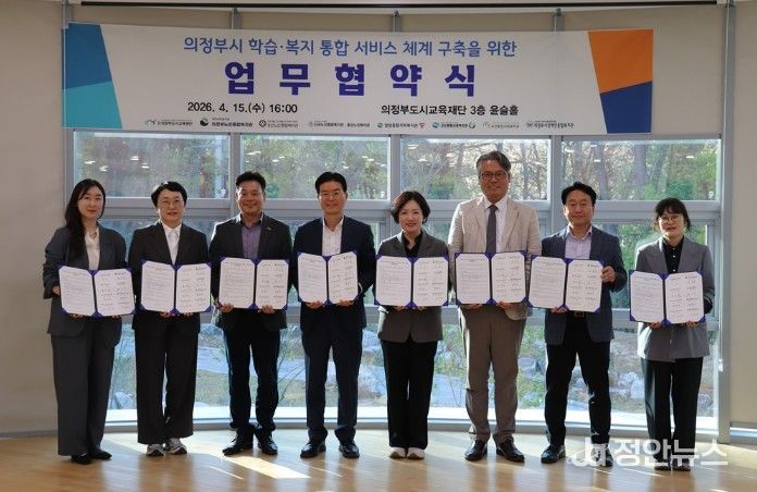 정안뉴스 안정주 기자 | 의정부도시교육재단은 4월 15일, 관내 7개 복지관과 함께 ‘의정부시 학습·복지 통합 서비스 체계 구축’을 위한 업무협약을 체결했다.