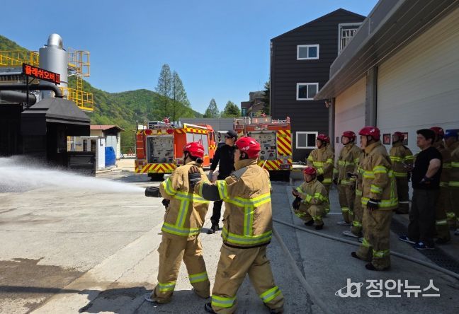 이러한 취지에 맞춰 교육 프로그램은 △위험물 성상에 대한 이해 △개인안전장비 착용 및 숙달 △실물 화재 진압 훈련 △소방차량 운영 및 관리 △유류 화재용 포소화약제 사용법 △비상탈출 훈련 등 현장 업무와 직결된 6개 핵심 실무를 중심으로 진행됐다.