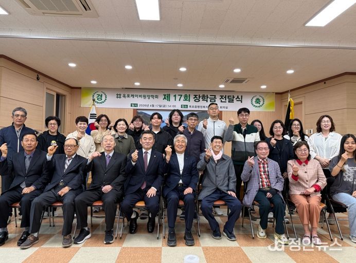 정안뉴스 안정주 기자 | (재)옥포케이비원장학회(이하 장학회)가 17일 제17회 장학금 수여식을 열고, 총 16명의 장학생에게 총 3,500여만 원 규모의 장학금을 전달했다고 밝혔다.