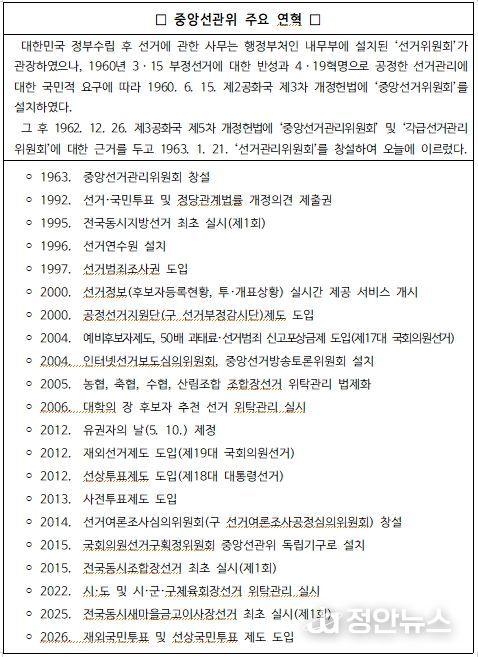 노태악 위원장은 “우리 위원회는 3·15 부정선거에 대한 반성과 4·19 민주이념을 기반으로 1963년 창설된 이래 헌법이 부여한 책무를 충실히 수행하기 위해 계속 노력해왔다”면서, “이번 지방선거도 공정한 선거관리를 바라는 국민의 눈높이에서 차질 없이 관리하기 위하여 더욱 철저히 준비하겠다”라고 밝혔다.