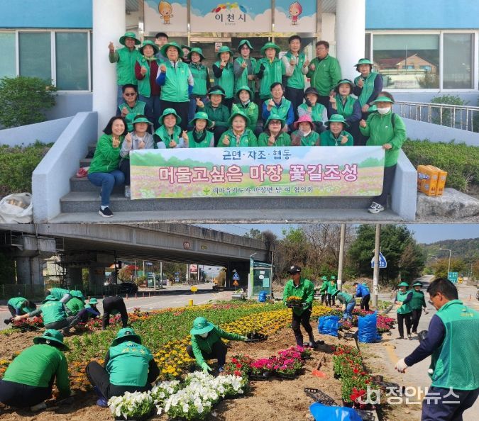 정안뉴스 안정주 기자 | 마장면 새마을남·녀지도자협의회(회장 지윤정, 이희자)는 4월 18일) 새봄맞이 아름 다운 마을 가꾸기를 위하여 관내 도로변 및 쌈지공원 등에 계절 페츄니아, 메리골드, 마가렛 등의 봄꽃묘를 식재하며 마을 곳곳에 생기를 더했다. 또한, 덕평로, 오천로 등 주요 대로변을 중심으로 가로화분 및 화단에 꽃을 식재하여 화사한 봄의 시작을 알렸다.