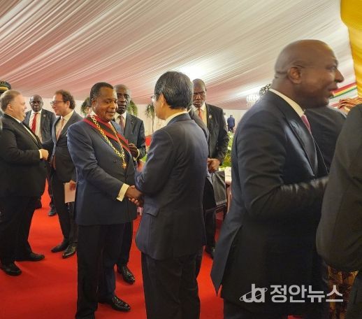정 특사는 취임식 참석 계기에 사수 응게소 대통령과 환담하며 이재명 대통령의 취임 축하 및 안부를 전달했으며, 한-콩고 양국이 오랜 기간 이어온 우호 협력 관계가 더욱 깊어질 수 있기를 희망했다.