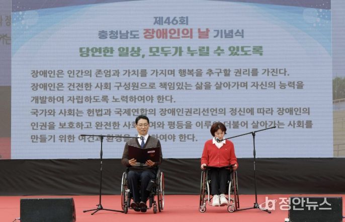 정안뉴스 안정주 기자 | 제46회 장애인의 날을 기념해 지난 4월 17일 홍주종합운동장에서 ‘제46회 충청남도 장애인의 날 기념행사’가 성황리에 개최됐다.