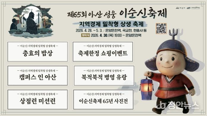 한편, 제65회 아산 성웅 이순신축제는 4월 28일부터 5월 3일까지 6일간 온양온천역, 현충사, 곡교천 일원에서 열린다. 개막식은 4월 30일 개최된다.