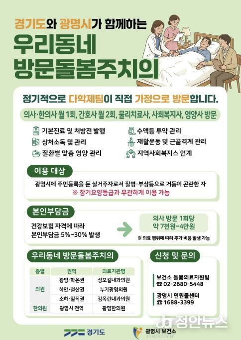 정안뉴스 안정주 기자 | 장기요양등급이 없는 광명시민도 집에서 방문돌봄주치의 진료를 받을 수 있게 된다.