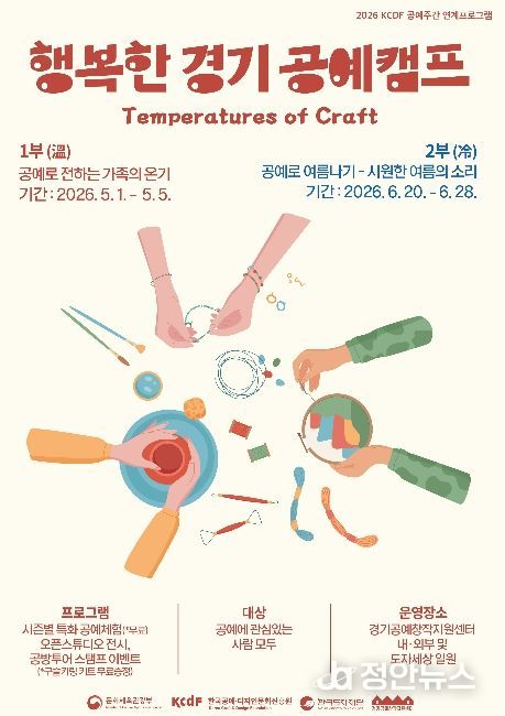 정안뉴스 안정주 기자 | 한국도자재단이 오는 5월 1일부터 경기공예창작지원센터(여주) 일원에서 체험·전시·이벤트를 결합한 참여형 프로그램 ‘2026 행복한 경기 공예 캠프’를 개최한다.