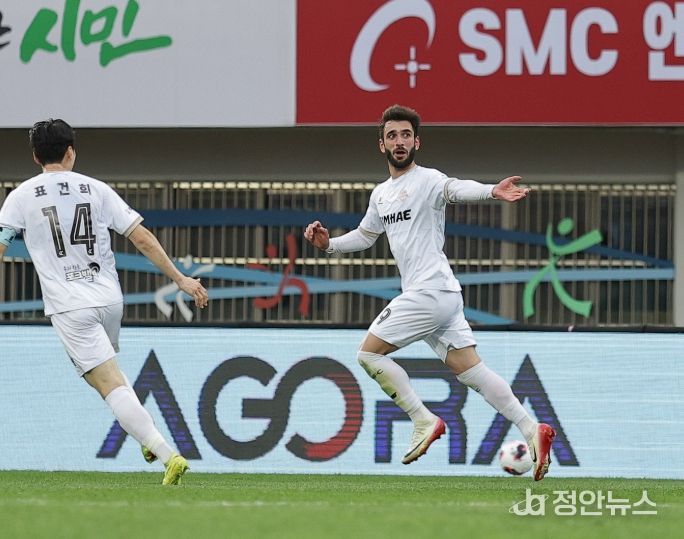 정안뉴스 김재홍 기자 | 김해FC2008이 충북청주FC와의 원정 경기에서 경기 종료 직전에 터진 극적인 동점골에 힘입어 값진 승점 1점을 획득했다.