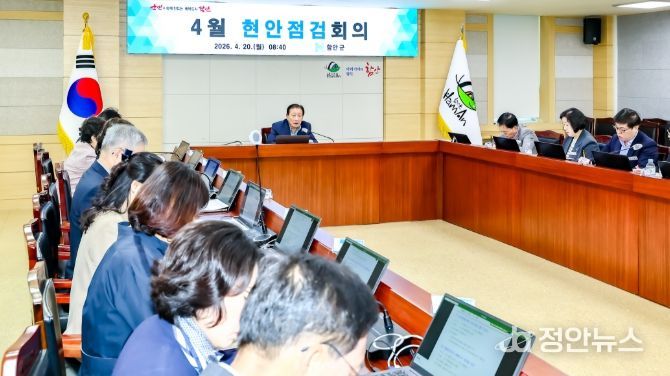정안뉴스 김재홍 기자 | 함안군은 지난 20일 함안군청 3층 중회의실에서 4월 현안점검회의를 열고 제65회 경남도민체육대회의 성공적인 마무리와 주요 현안 사항을 점검했다고 밝혔다.