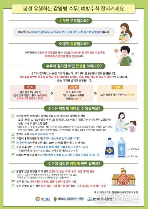 한편, 거제시는 교육청과 협력해 수두 집단발생 시 즉각적인 보고체계를 유지하고, 역학조사와 방역 조치를 신속히 실시하는 등 감염병 확산 차단에 총력을 기울일 방침이다.