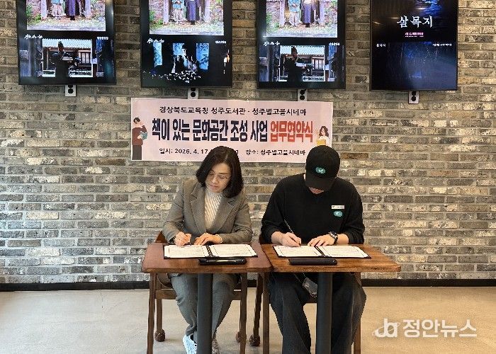 정안뉴스 안정주 기자 | 경상북도교육청 성주도서관은 성주별고을시네마와 '책이 있는 문화공간 조성'사업 추진을 위한 업무협약을 체결하고, 작은영화관과 연계한 독서문화 확산에 나선다.