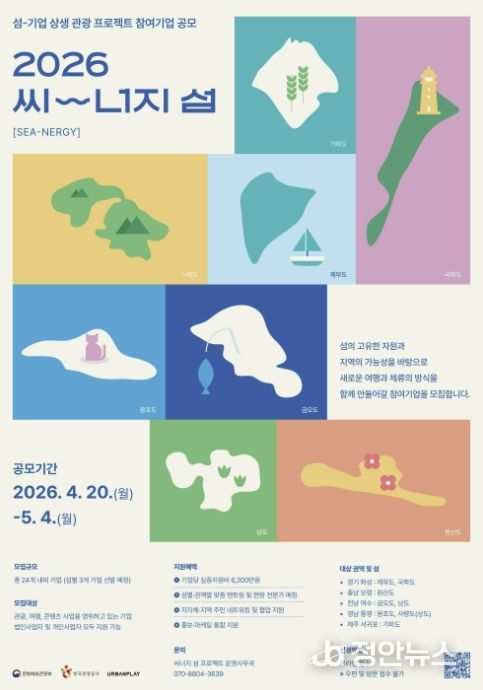 정안뉴스 안정주 기자 | 화성특례시는 한국관광공사가 주관하는 ‘2026 섬-기업 상생 관광 프로젝트’에 선정돼, 제부도와 국화도를 대상으로 한 참여 기업 공모를 본격 추진한다고 밝혔다.