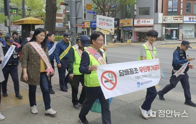 정안뉴스 안정주 기자 | 수원시 팔달구는 지난 17일, 수원역 로데오거리 일대에서 금연 실천과 담배꽁초 무단투기 근절을 위한 합동 캠페인을 실시했다.