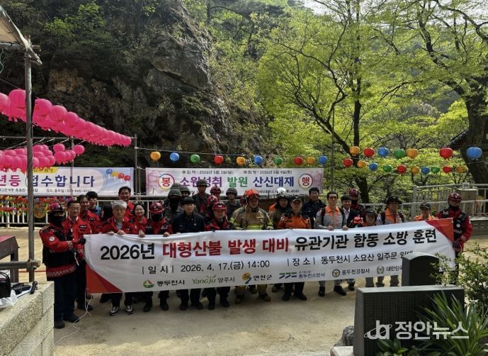 정안뉴스 안정주 기자 | 동두천시는 지난 17일 소요산 일주문 일대에서 대형 산불 발생에 대비한 유관기관 합동 소방훈련을 실시했다.