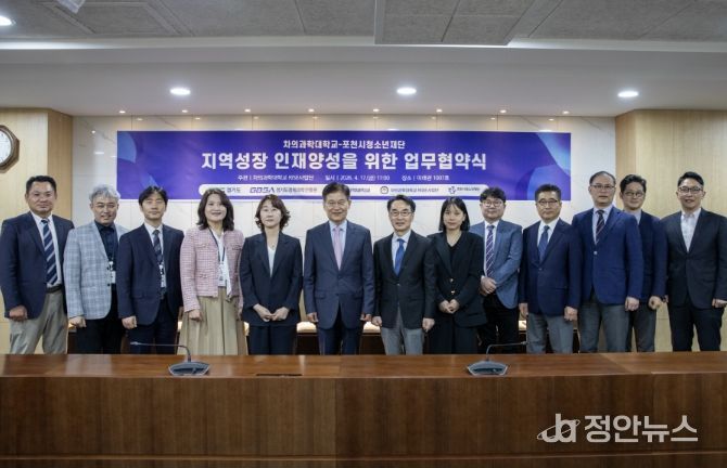 정안뉴스 안정주 기자 | (재)포천시청소년재단과 차의과학대학교는 지역사회 상생과 미래 인재 육성을 위한 업무 협력 기반을 마련하고자 지난 17일 업무협약을 체결했다.