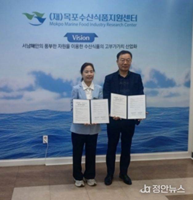 정안뉴스 안정주 기자 | (재)목포수산식품지원센터는 지난 16일 전남서부근로자건강센터와 업무협약을 체결하고 임직원의 건강증진과 산업재해 예방을 위한 통합 건강관리 프로그램을 추진한다고 밝혔다.