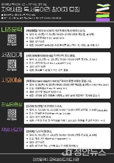 정안뉴스 안정주 기자 | 인천광역시교육청화도진도서관은 지역 독서 문화 활성화를 위해 ‘지역서점 연계 독서동아리’ 참여자를 모집한다고 20일 밝혔다.