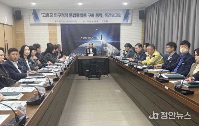 정안뉴스 안정주 기자 | 고흥군은 20일 군청 흥양홀에서 ‘고흥군 인구정책 통합플랫폼 구축 용역’ 중간보고회를 개최하고, 사업 추진상황을 점검하는 한편, 향후 구축방향에 대한 의견을 수렴했다고 밝혔다.