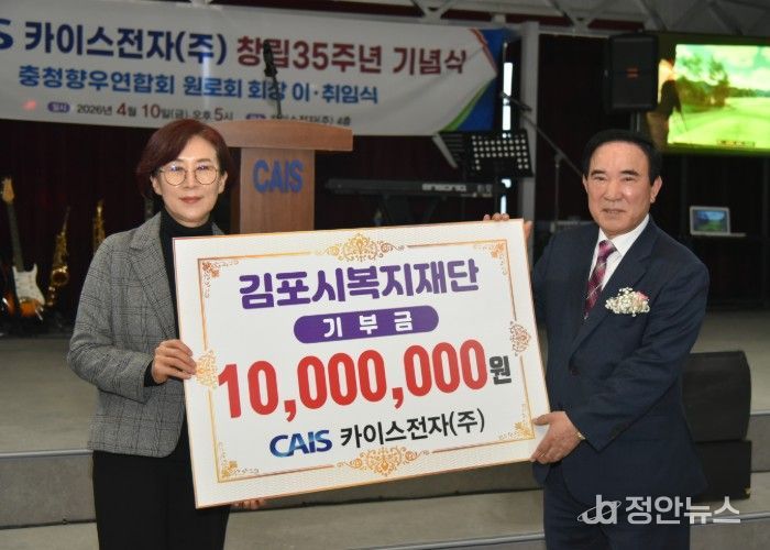 이번 기부는 창립 35주년을 기념하는 뜻깊은 나눔으로, 카이스전자는 기업의 성장과 함께 지역 사회에 받은 사랑을 환원하고자 하는 마음을 담아 기부금을 전달했다.