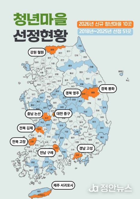 행정안전부는 전국 141개 팀이 치열한 경합을 벌여, 지역의 특색을 살려 청년 자립을 이끌 ‘2026년 청년마을’ 10곳을 최종 선정했다고 밝혔다.