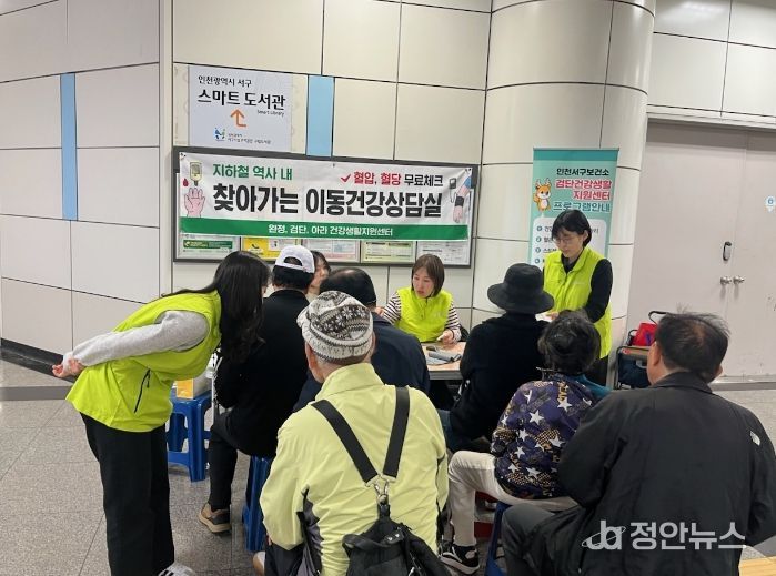 정안뉴스 안정주 기자 | 인천 서구 검단권역(완정ˑ검단ˑ아라) 건강생활지원센터는 지난 17일 인천지하철 2호선 검단사거리역에서 지역 주민을 대상으로 찾아가는 이동건강삼담실은 운영했다고 밝혔다.
