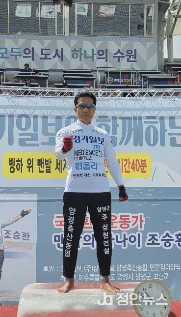 정안뉴스 안정주 기자 | 양평군은 지난 19일 경기도 수원종합운동장에서 양평군 홍보대사이자 국제 환경운동가로 활동 중인 ‘맨발의 사나이’ 조승환 씨가 인간의 한계를 넘어서는 기록을 세웠다고 밝혔다.