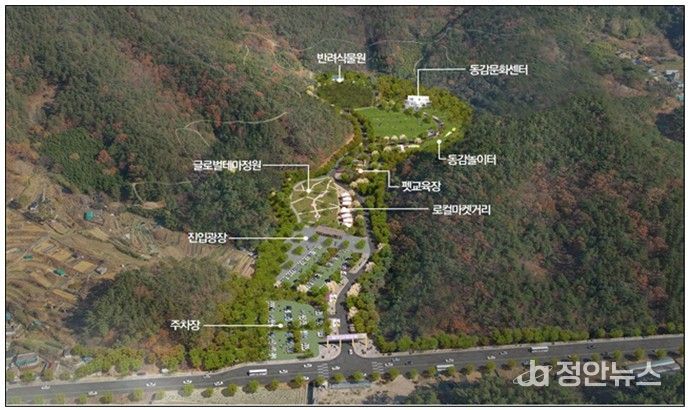 기장군 철마면 구칠리 내 24만 1천 제곱미터(㎡)에 시비 433억 원을 투입해 국내 최대 규모로 조성되며, ▲동감문화센터 ▲동감둘레길 ▲글로벌테마정원 ▲동감놀이터 ▲펫교육장 ▲반려식물원 ▲로컬마켓거리 등 반려문화 관련 다양한 시설 들어설 예정이다.