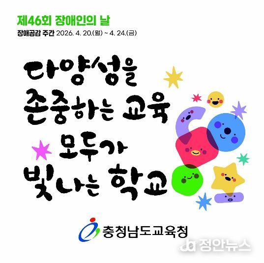 정안뉴스 안정주 기자 | 충남교육청은 제46회 장애인의 날을 맞아 장애공감문화 확산을 위해 4월 20일 ~ 24일을 ‘장애공감주간’으로 운영한다고 밝혔다.