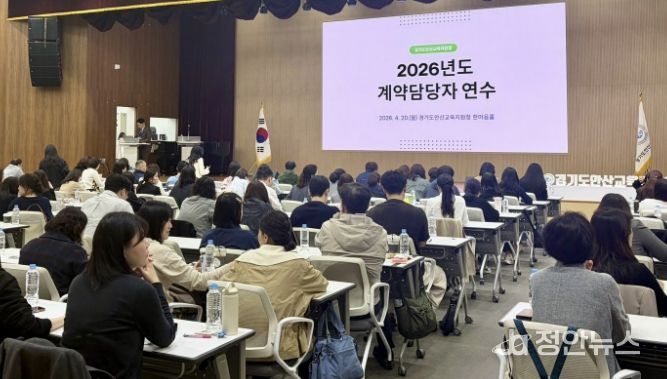 정안뉴스 안정주 기자 | 경기도안산교육지원청은 4월 20일, 관내 각급 학교 및 교육지원청 계약업무 담당자를 대상으로 계약 전문성 향상을 위한 '2026년도 계약담당자 연수'를 실시했다.