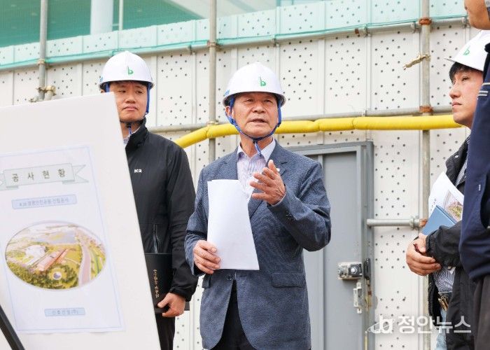 정안뉴스 안정주 기자 | 안산시의회 박태순 의장이 20일 단원구 초지동 4·16생명안전공원 건립공사 현장을 방문해 공사 진행 상황을 점검하고 안전 시공과 원활한 자재 수급을 당부했다.