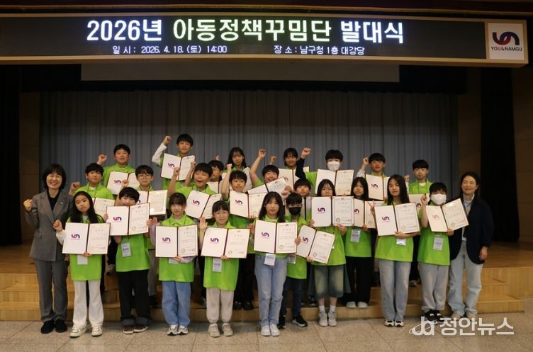 정안뉴스 안정주 기자 | 부산 남구는 지난 4월 18일 구청 1층 대강당에서 '2026년 아동정책꾸밈단 발대식'을 개최하고, 아동 참여 기반 정책 활동을 본격적으로 시작했다고 밝혔다.