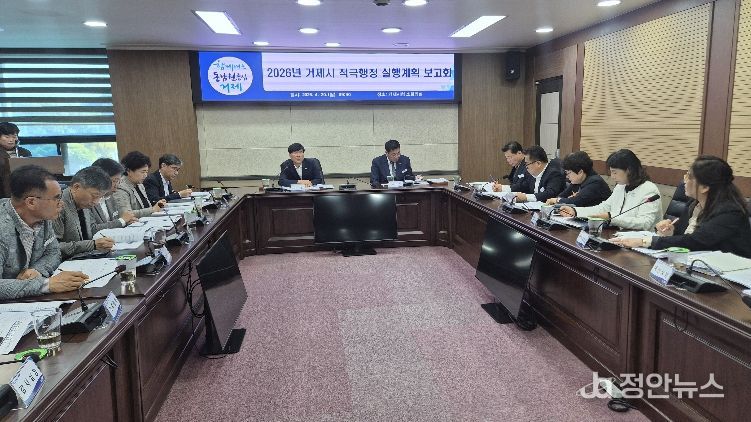 정안뉴스 김재홍 기자 | 거제시는 20일 시청 소회의실에서 조직 내 적극행정 문화를 확산하고, 실천 의지를 다지기 위해 ‘2026년 거제시 적극행정 실행계획 보고회’를 개최했다.