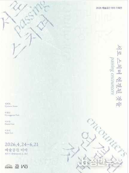 정안뉴스 안정주 기자 | 제주문화예술재단은 창립 25주년을 맞아 오는 24일부터 6월 21일까지 예술공간 이아 B1 전시실에서 기획전 《서로 스치며 연결된 것들 : Passing Encounters》를 개최한다.