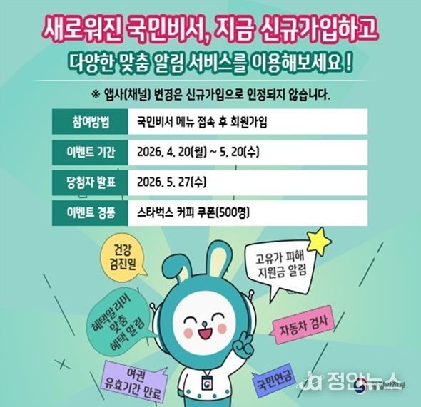 행정안전부는 서비스 활성화를 위해 4월 20일부터 5월 20일까지 신규 가입자 중 500명을 추첨하여 음료 쿠폰을 제공하는 이벤트도 함께 진행한다.