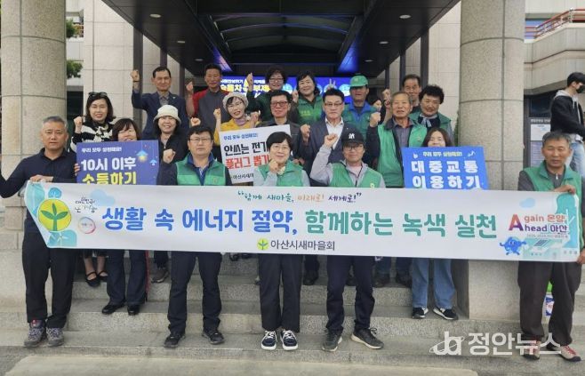 먼저 새마을회는 지난 17일 아산시청 일원에서 ‘생활 속 에너지 절약, 함께하는 녹색 실천’을 주제로 캠페인을 실시했다. 이날 회원들은 시민들을 대상으로 전기 절약, 대중교통 이용, 일회용품 줄이기 등 일상에서 실천할 수 있는 에너지 절약 방법을 안내하며 탄소중립 실천 분위기 확산에 나섰다.
