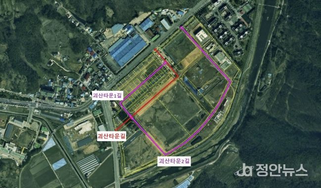 확정된 도로명은 총 4개 구간이다. 괴산 미니복합타운 단지 내에는 △괴산타운길 △괴산타운1길 △괴산타운2길이 부여됐다.
