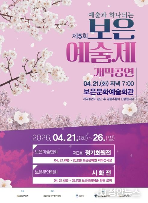 정안뉴스 안정주 기자 | 충북 보은군은 지역 예술인과 군민이 문화로 소통하고 화합하는 ‘제5회 보은예술제’를 21일부터 26일까지 6일간 보은문화예술회관 및 보은문화원 일원에서 개최한다고 밝혔다.
