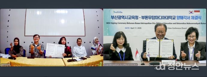 정안뉴스 안정주 기자 | 부산광역시교육청은 지난 17일 인도네시아 부톤무함마디아대학교(총장 와 오데 알 자릴리아니, Wa Ode Al Zarliani)와 ‘한국어 교육 활성화 및 문화교류 증진을 위한 양해각서’를 온라인 화상회를 통해 체결했다고 밝혔다.