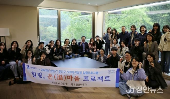 이일희 장안구청장은 “사회복지담당 공무원은 시민의 복지 최일선에서 중요한 역할을 수행하고 있는 만큼, 이들의 마음건강 관리가 매우 중요하다”며 “앞으로도 다양한 힐링 및 정서지원 프로그램을 지속적으로 확대해 나가겠다”고 밝혔다.