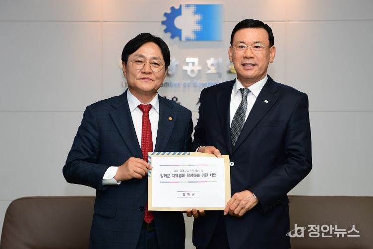 정안뉴스 안정주 기자 | 강화군은 지역경제 활성화와 국가균형발전 실현을 위해 인천상공회의소(회장 박주봉)에 ‘강화 경제자유구역 지정’ 등을 포함한 정책 제언을 전달하고, 경제계와의 협력 강화를 요청했다고 밝혔다.