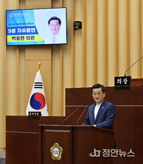 또한 백 의원은 발언 말미에서 “보이지 않는 곳에서 주민을 위해 헌신해 온 공직자들의 노력에 깊이 감사드린다”며 “앞으로도 주민이 체감할 수 있는 변화로 이어지는 행정을 펼쳐달라”고 당부했다.