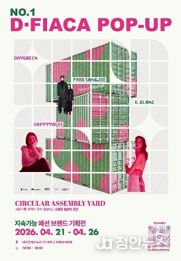 정안뉴스 안정주 기자 | 대구광역시는 ‘제23회 국제그린에너지엑스포(4월 22~24일)’ 개최에 맞춰 엑스코 전시와 연계한 펙스코(FXCO) 활성화의 일환으로 ‘지속가능한 패션 팝업스토어’ 행사를 운영한다.