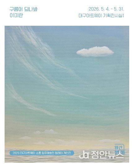 정안뉴스 안정주 기자 | 대구문화예술진흥원 문화예술본부에서 운영하는 대구아트웨이는 전시 프로그램 '월간범어'의 일환으로 이미란 작가의 개인전 ‘구름이 되나봐’로, 오는 5월 4일부터 31일까지 대구아트웨이 기획전시실 1에서 선보인다.