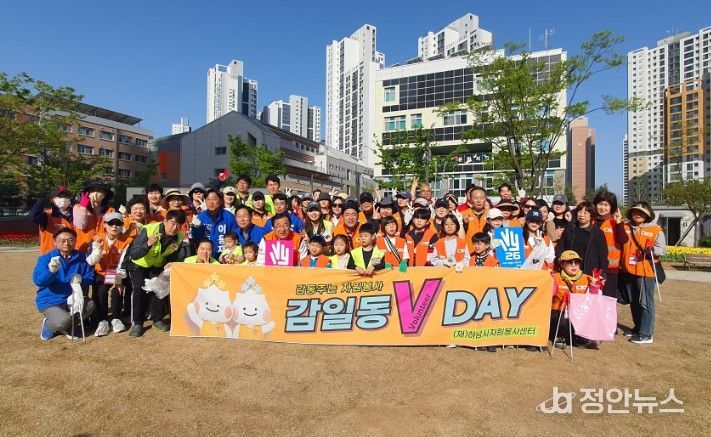 정안뉴스 안정주 기자 | (재)하남시자원봉사센터는 지난 18일, 자원봉사자 70여 명이 참여한 가운데 환경정화 캠페인“감일동 V-DAY”행사를 주민들의 적극적인 참여속에 성공적으로 마무리 했다.